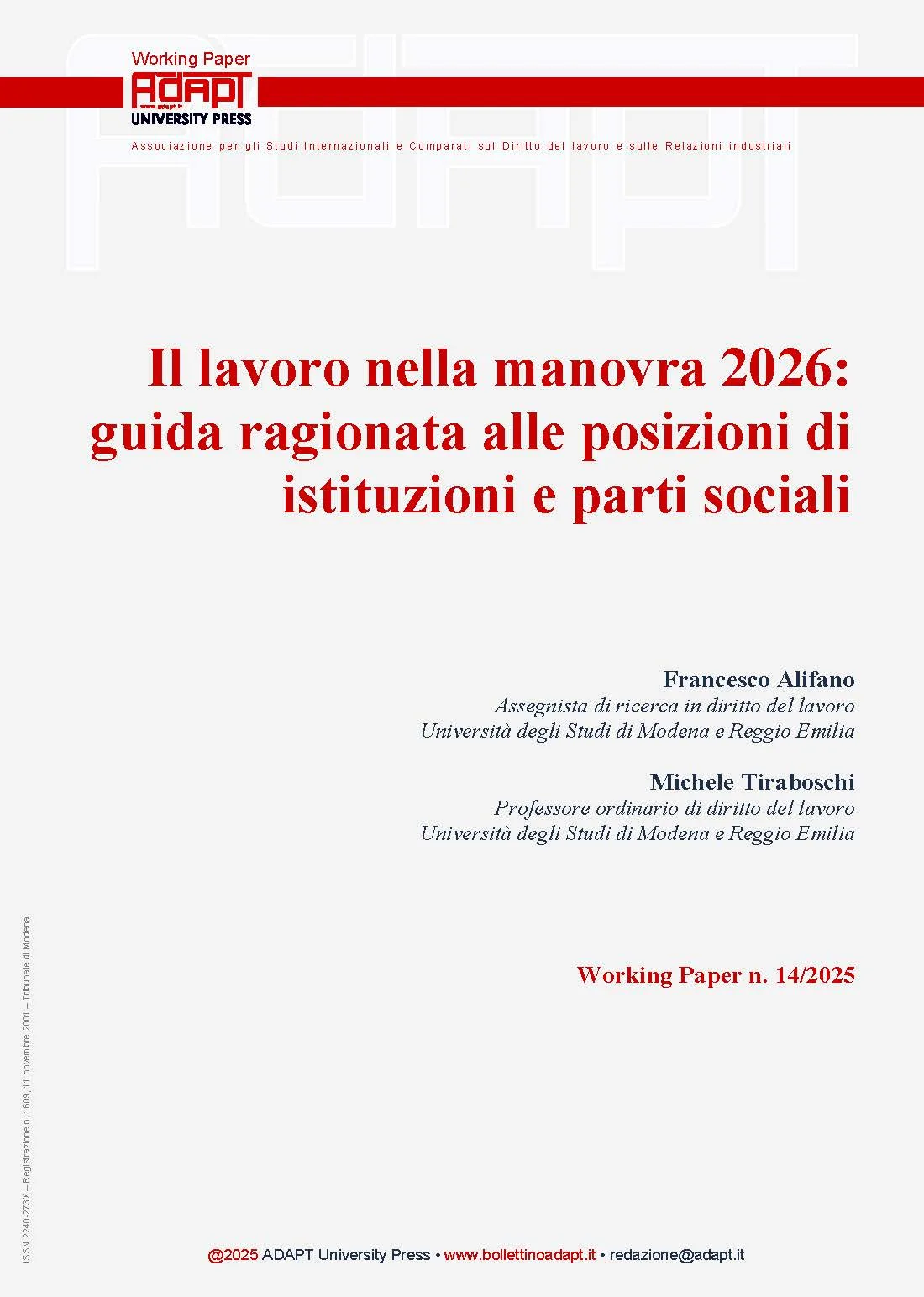 Il lavoro nella manovra 2026: guida ragionata alle posizioni di istituzioni e parti socialiAutore: Francesco Alifano, Michele Tiraboschi Anno: 2025 Categoria: Working Paper, Working Paper ADAPT Numero: 14 Scarica la pubblicazione |
