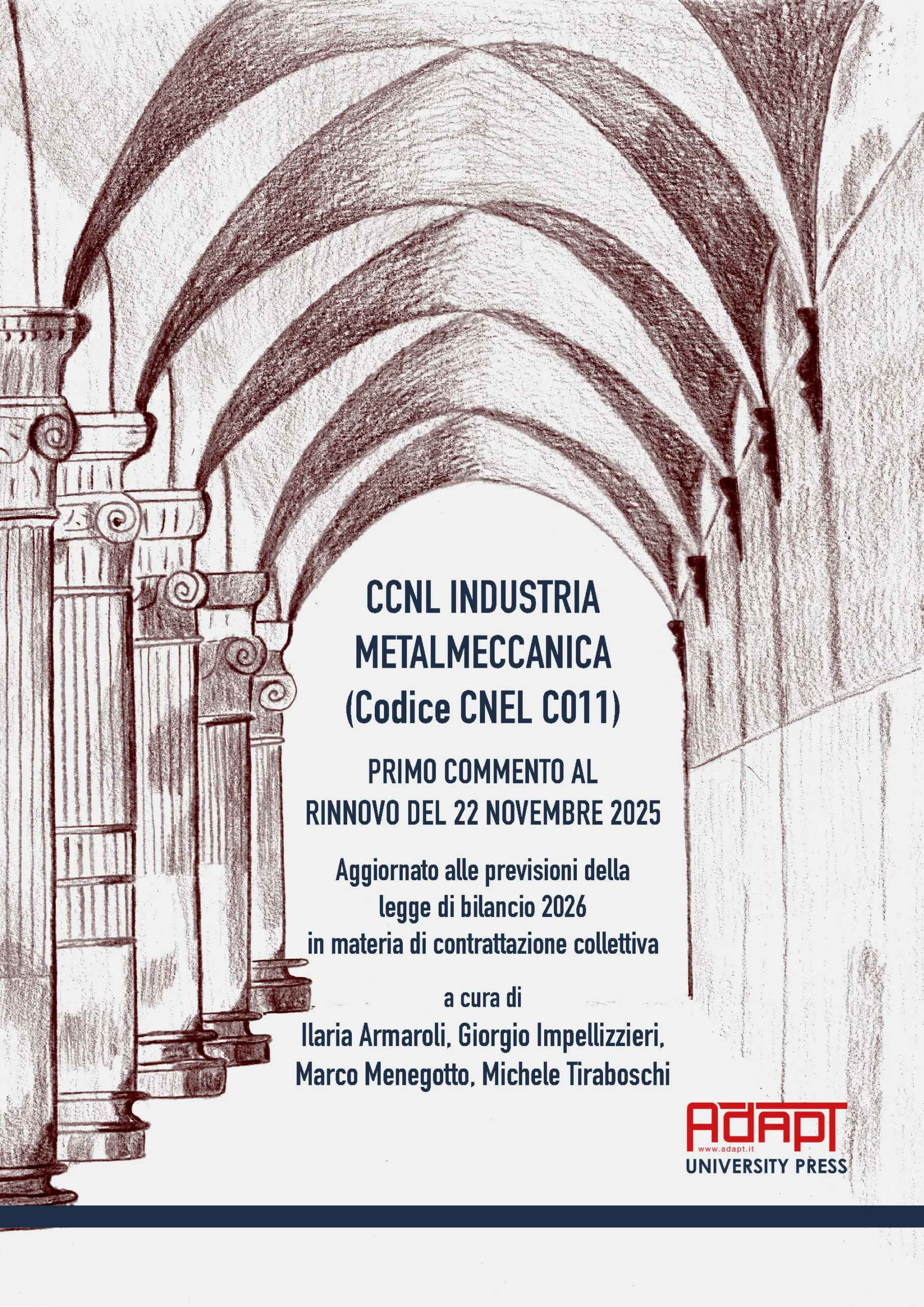 CCNL industria metalmeccanica (Codice CNEL C011). Primo commento al rinnovo del 22 novembre 2025. CCNL industria metalmeccanica (Codice CNEL C011). Primo commento al rinnovo del 22 novembre 2025. Aggiornato alle previsioni della legge di bilancio 2026 in materia di contrattazione collettivaAutore: Giorgio Impellizzieri, Ilaria Armaroli, Marco Menegotto, Michele Tiraboschi Anno: 2026 Categoria: E-Book, Libri, Per uno studio della contrattazione collettiva ISBN versione stampata: 979-12-80922-74-8 ISBN versione pdf: 979-12-80922-73-1 Pubblicazione scaricabile gratuitamente |