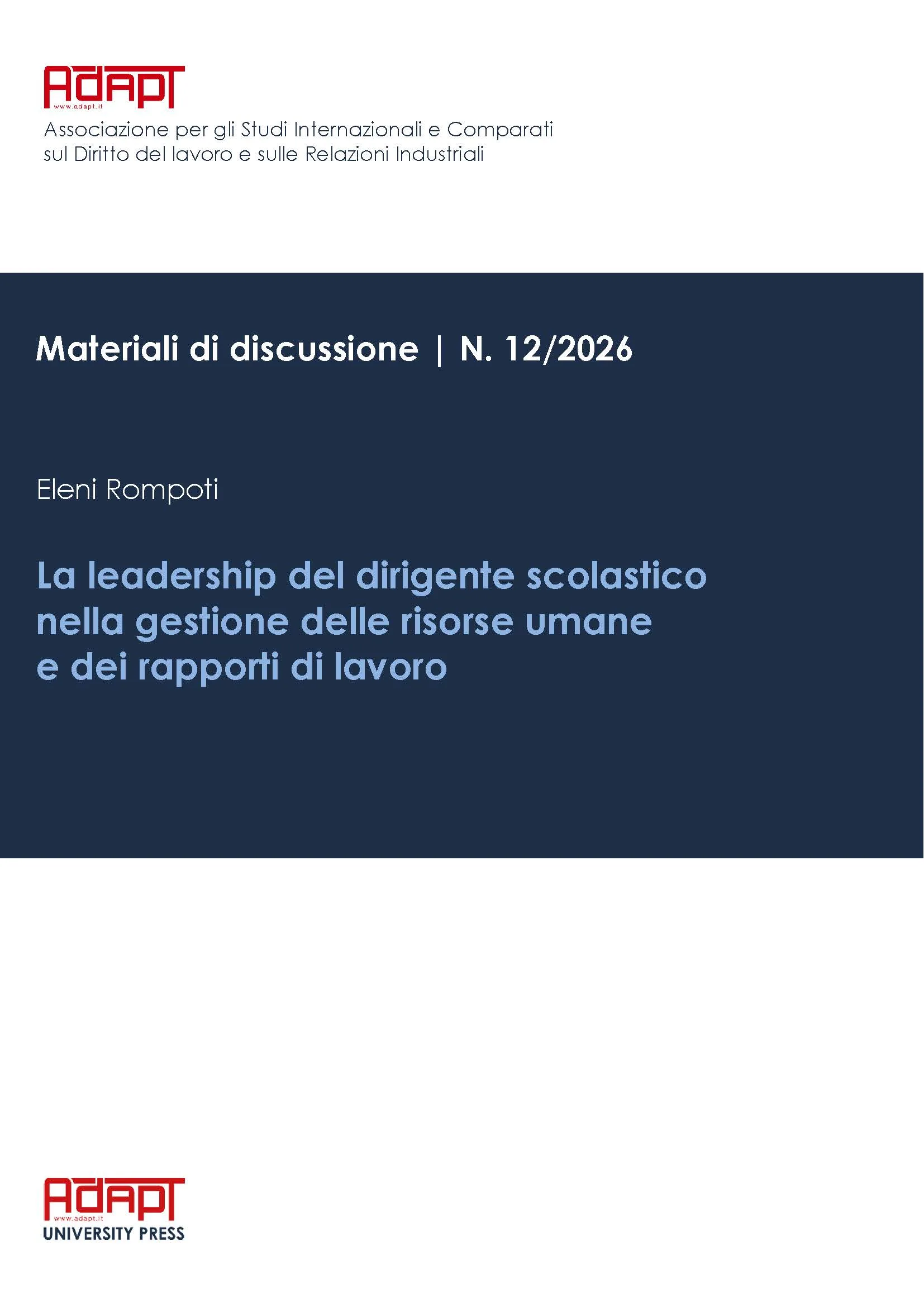 La leadership del dirigente scolastico nella gestione delle risorse umane e dei rapporti di lavoroAutore: Eleni Rompoti Anno: 2026 Categoria: E-Book, Materiali di discussione Numero: 12 Pubblicazione scaricabile gratuitamente |